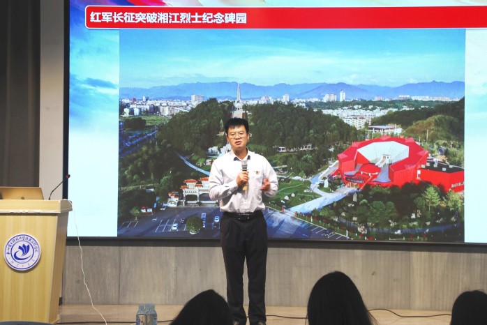 主题分享环节,尹汤怀以“长征国家文化公园建设”为切入点,系统梳理了公园的设计理念、总体布局和文化活动等方面,并结合湘江战役等标志性事件,阐释了红色文化遗存保护与地名文化建设的实践路径。他表示,长征国家文化公园作为长征历史的“展示窗”和红色文化传承的“活课堂”,通过开展一系列丰富多彩的红色研学体验活动,在浓厚的红色氛围中,让思政教育入脑入心,让长征沿线的历史记忆焕发新的生命力。他强调,长征国家文化公园不仅是文化遗产的集中展示区域,更是赓续红色血脉、赋能乡村振兴的重要载体,要持续挖掘红色文化,讲好长征故事,让红色基因代代相传。